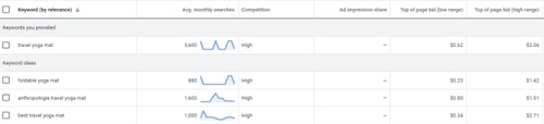Suddenly Google seems like a pretty good option (especially because the CPC for those terms is fairly low). These people obviously need yoga mats, and are looking for mats which are convenient for travel. Seems like a good option!